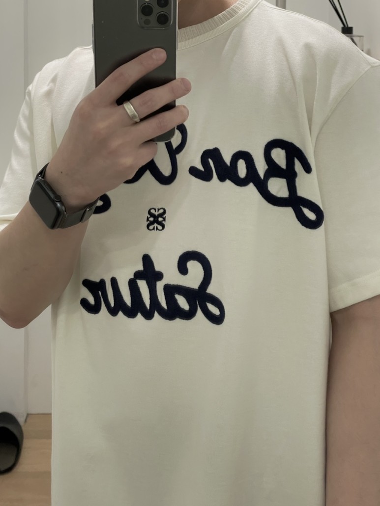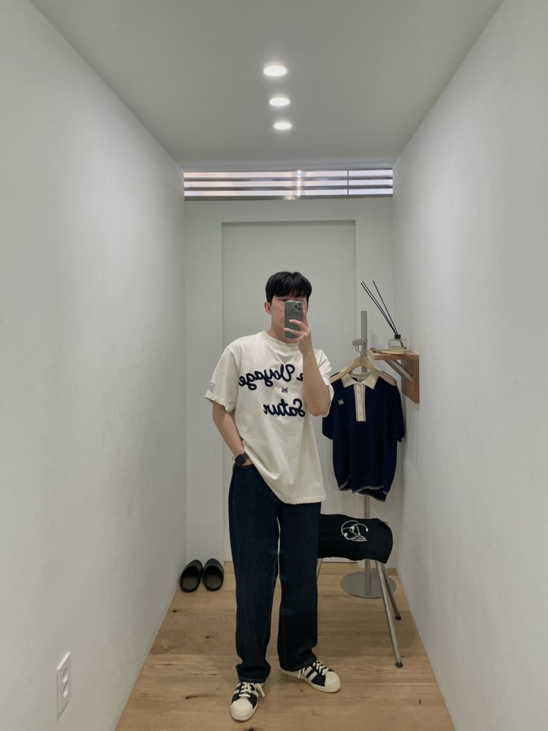 과하지 않게 적당한 핏에 여름에 편하게 입을 수 있는 반팔 티셔츠네요.