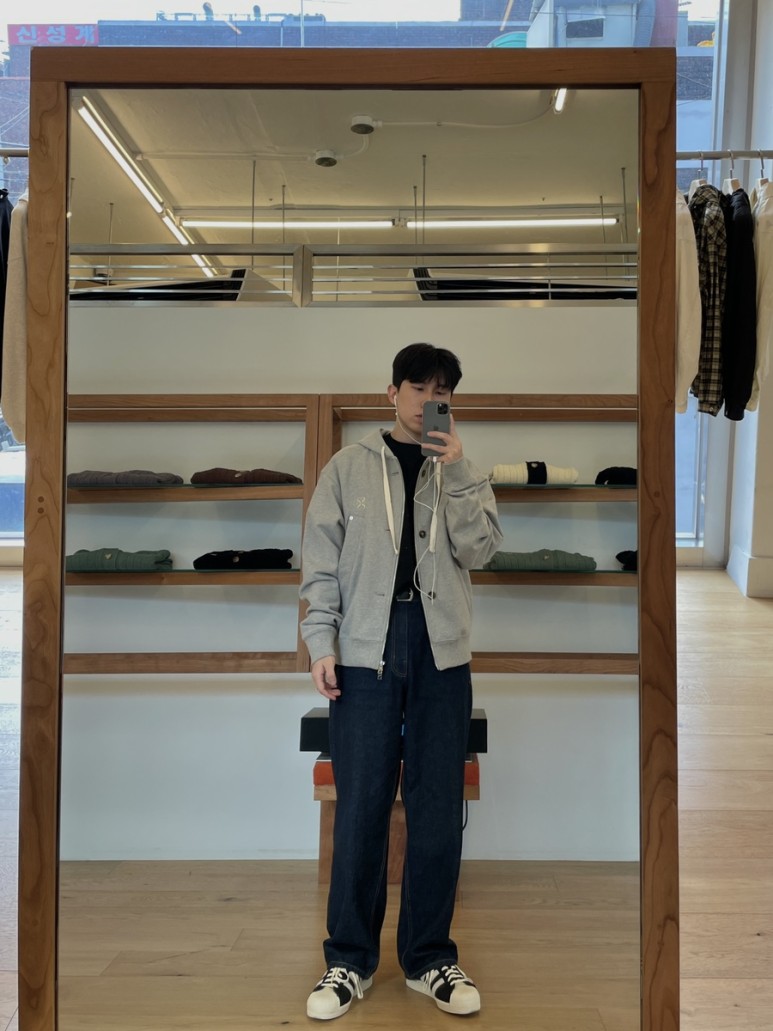 함께 셋업으로 나온 스웨트 팬츠와 입어도 좋고 데님과도 궁합이 좋아 활용도가 괜찮아 보입니다.